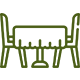 O refeitório é um espaço acolhedor onde os residentes podem desfrutar de refeições nutritivas em convívio, promovendo bem-estar social.