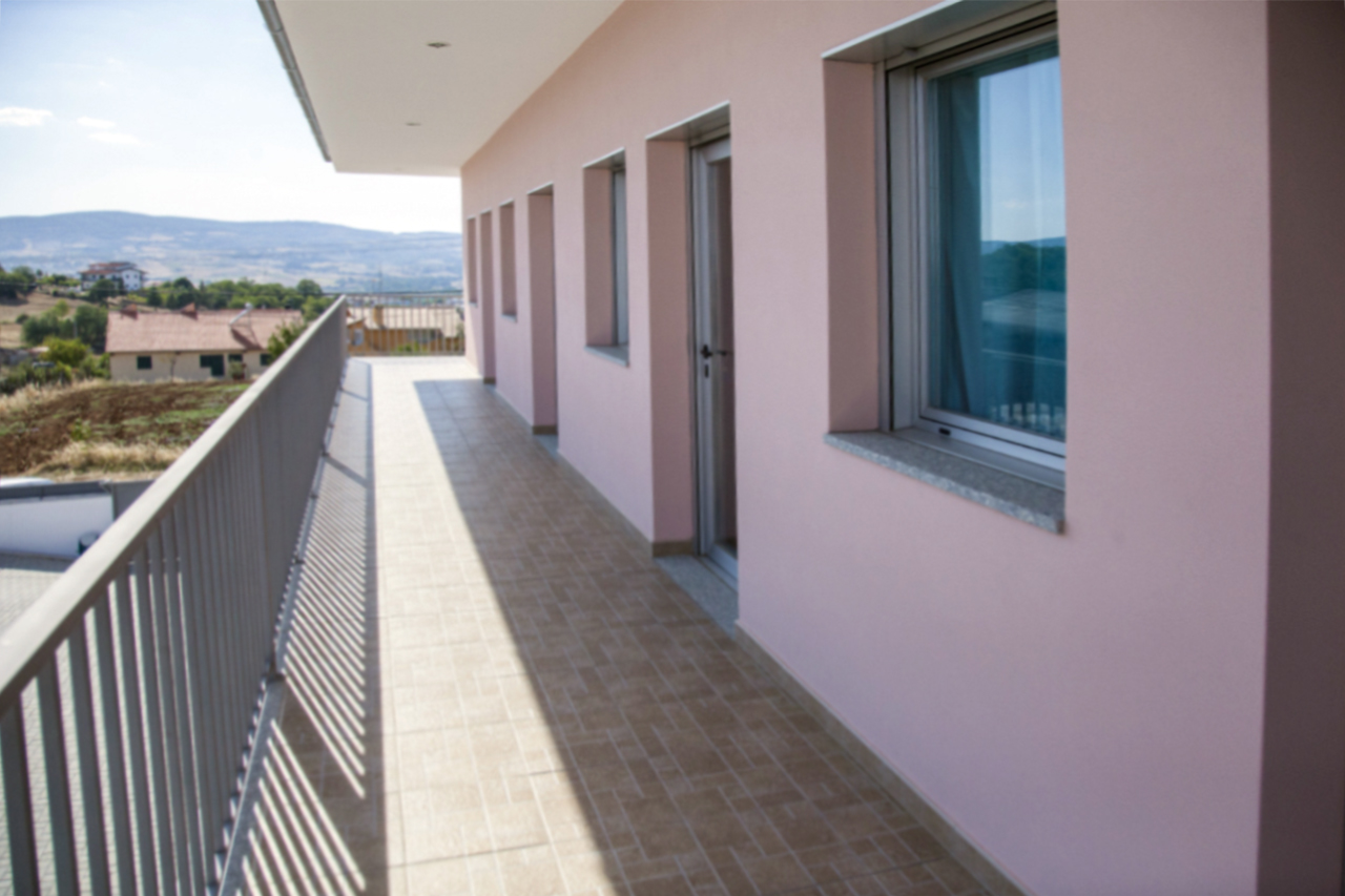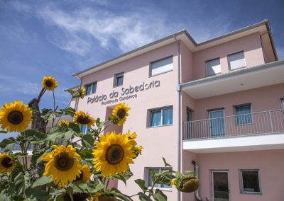 O espaço exterior da instituição proporciona áreas seguras e agradáveis para passeios, convívio e momentos de lazer ao ar livre.