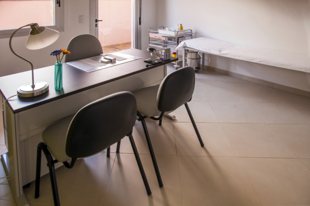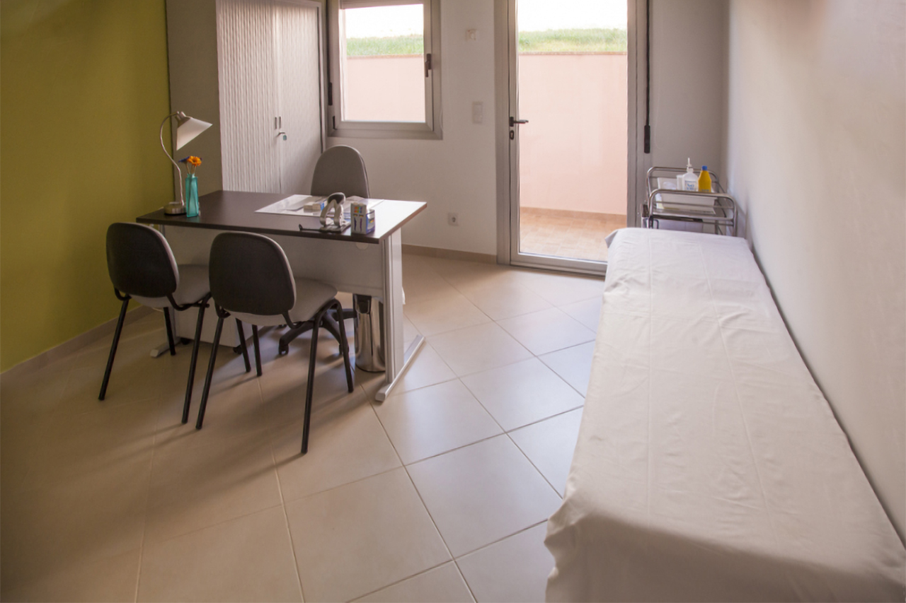 O gabinete médico é um espaço equipado para consultas e acompanhamento de saúde, garantindo cuidados personalizados.