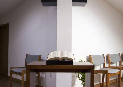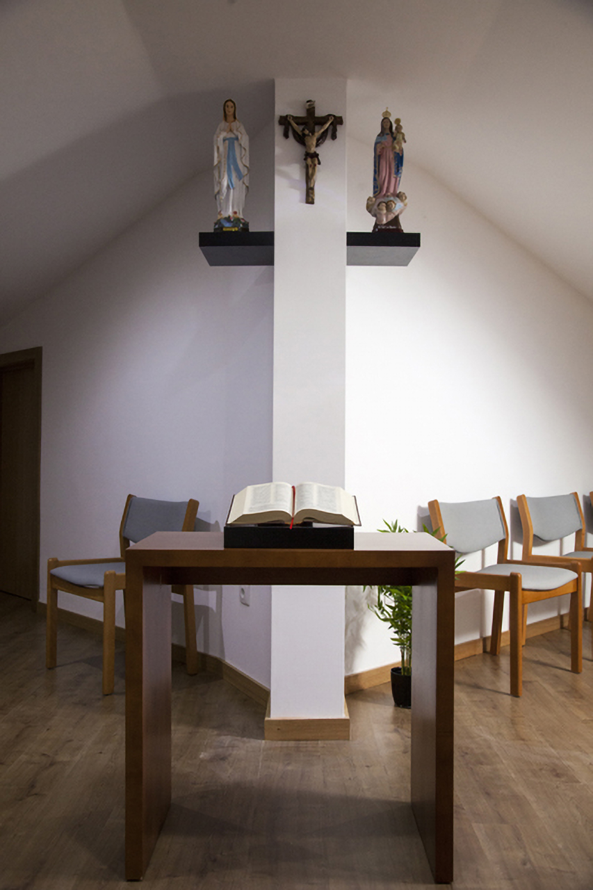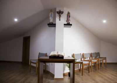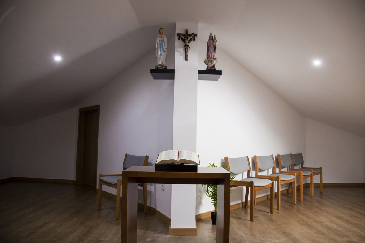 Sala de oração Um espaço tranquilo e acolhedor, dedicado à oração, reflexão e às práticas espirituais conforme a ideologia religiosa de cada residente. Instalações Exterior Receção Corredores Quarto Individual Quarto Duplo Quarto de Casal Suite Administração WC adptados Banho assistido Sala de chá / leitura Sala de convívio e atividades Gabinete médico Sala de refeições / copa Sala de reabilitação Sala de cuidado integral Refeitório Sala de oração Cabeleireiro Lavandaria Cozinha Um espaço calmo e sereno de meditação e encontro com Deus.